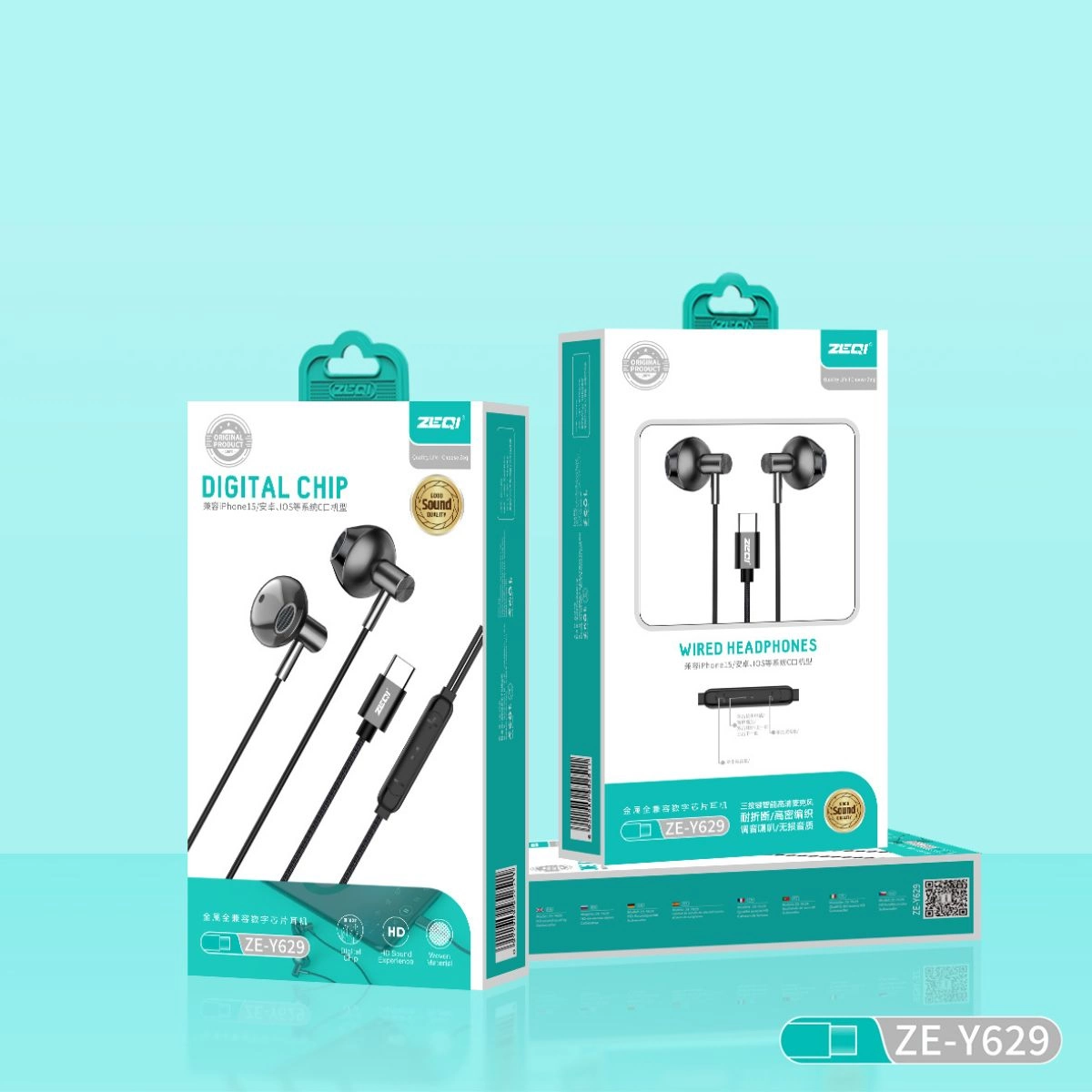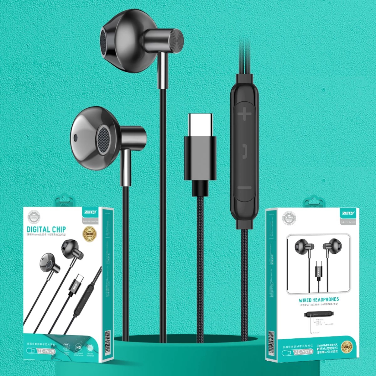 Auriculares Tipo-C Zeqi compatibles con iPhone 15, modelo ZE-Y629, sonido de alta calidad, diseño ergonómico, conectividad rápida, control de volumen integrado, micrófono incorporado, cable resistente, ideal para música y llamadas, tecnología de cancelación de ruido, compactos y portátiles.
