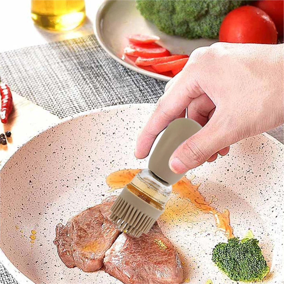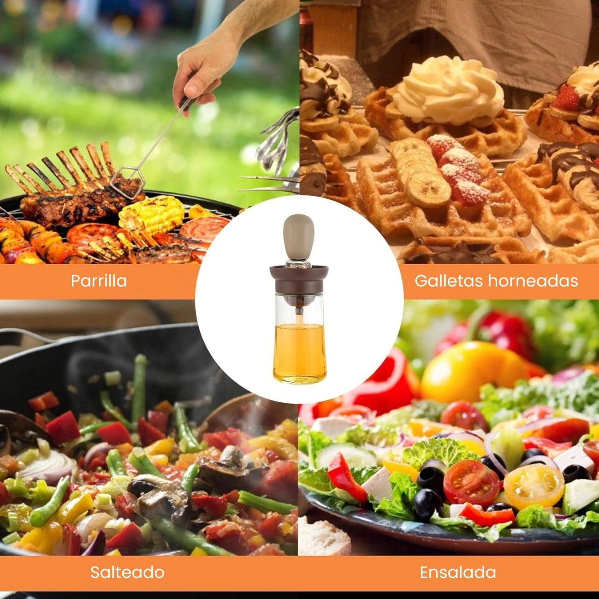 Nuestro dispensador de aceite con cepillo de silicona es la herramienta perfecta para mejorar tu experiencia en la cocina y al aire libre. Ideal para barbacoas, engrasar pollos, tortas, untar ensaladas, miel y otras salsas, te permite aplicar el aceite de manera precisa y eficiente.