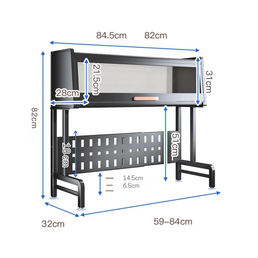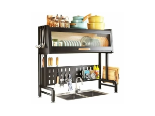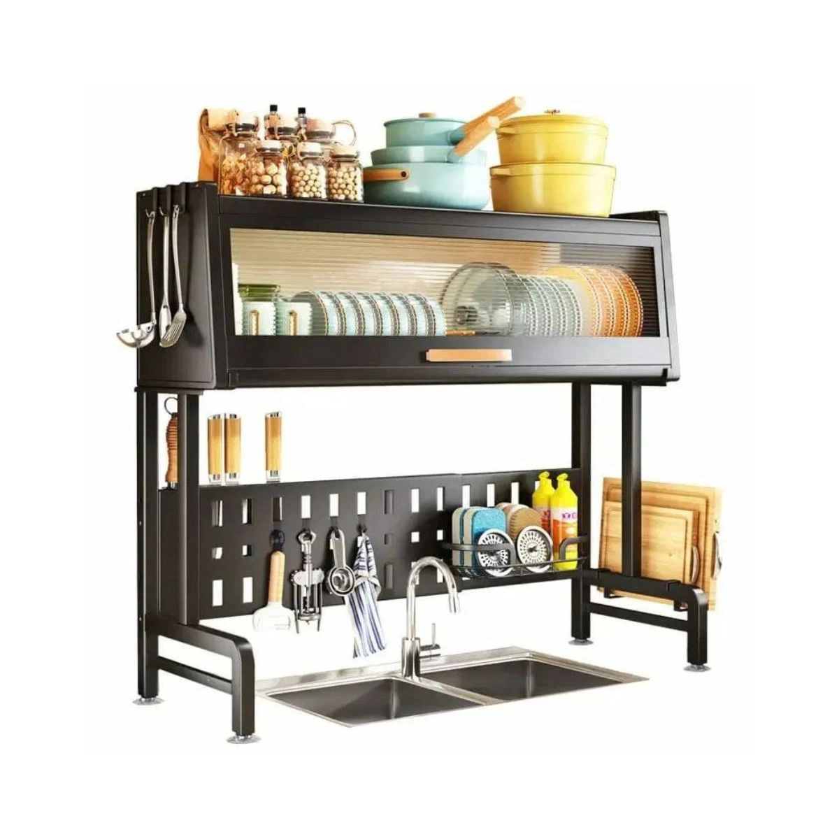 Diseño multifuncional: cuenta con un nivel superior diseñado con un riel de protección elevado para evitar que los artículos se caigan. Las puertas de armario a prueba de polvo están diseñadas para mantener los platos limpios. Además, dispone de 4 potentes ventosas en la parte inferior de las patas para evitar que se caiga o se mueva.
