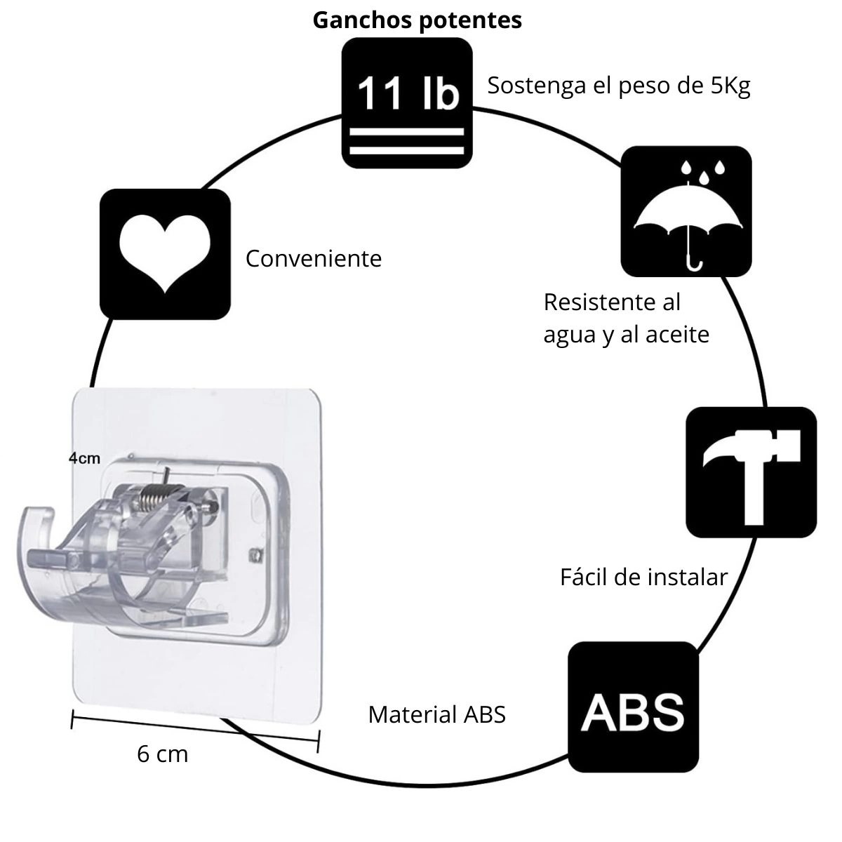 Versatilidad de Uso: Estos soportes son ideales para una variedad de superficies lisas, como muebles, vidrio, azulejos, mármol, espejos y acero inoxidable. Sin embargo, ten en cuenta que no son aptos para paredes pintadas o texturizadas. Con su amplio uso, puedes colocarlos en cualquier lugar que necesites.