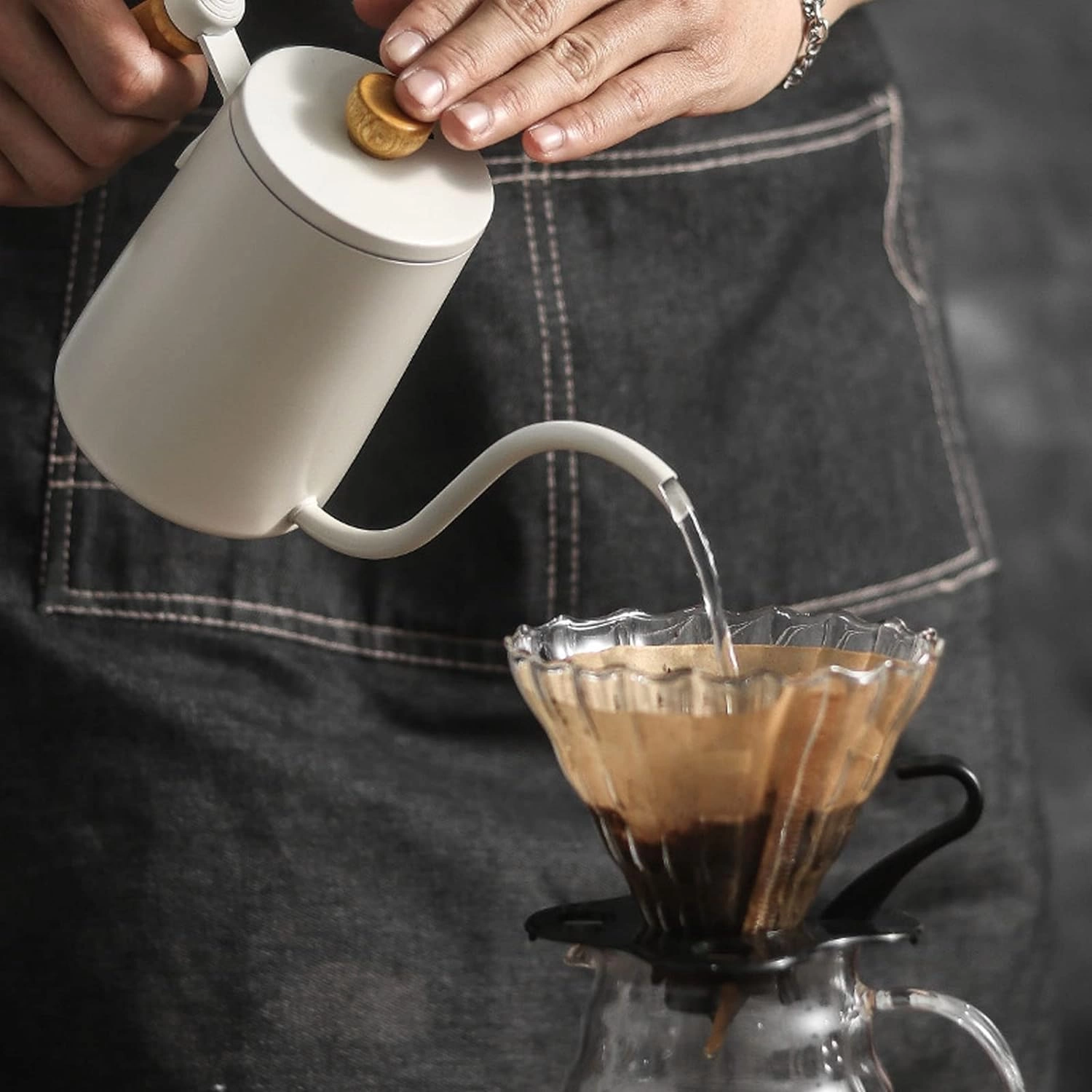 Diseño de cuello de cisne: El diseño de cuello de cisne permite un fácil control del flujo de agua, lo que es ideal para verter con precisión sobre granos de café o té.