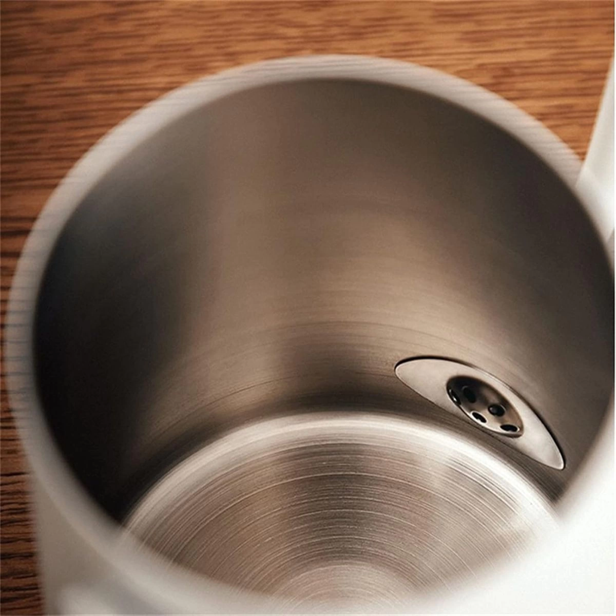 Orificio de ventilación: La tapa del hervidor cuenta con un orificio de ventilación que ayuda a evitar la formación de vacío generado por la alta temperatura en la tetera, lo que facilita la apertura y evita posibles quemaduras.