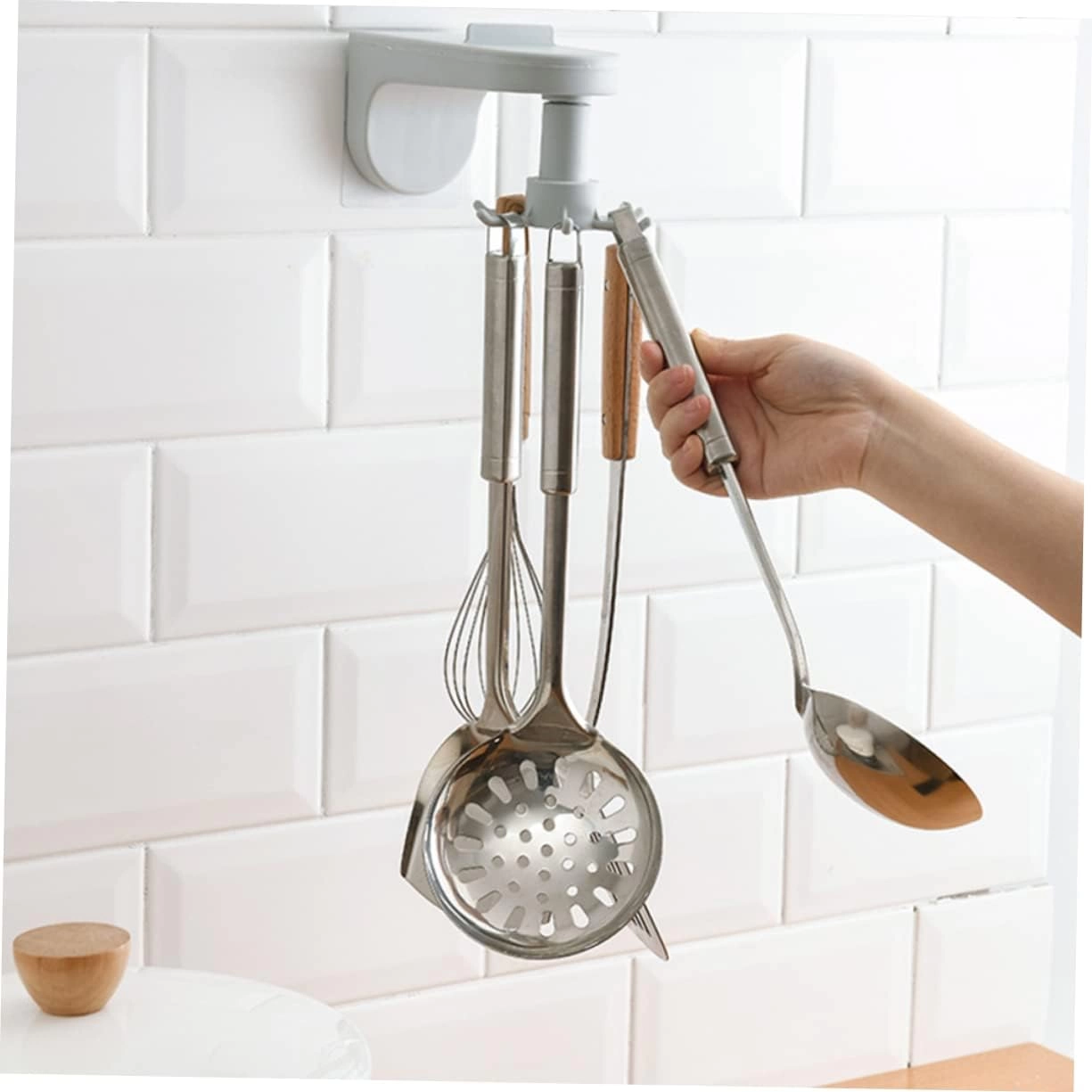 Perchero giratorio multifuncional de ABS montado en la pared con 6 ganchos para gabinete de baño.