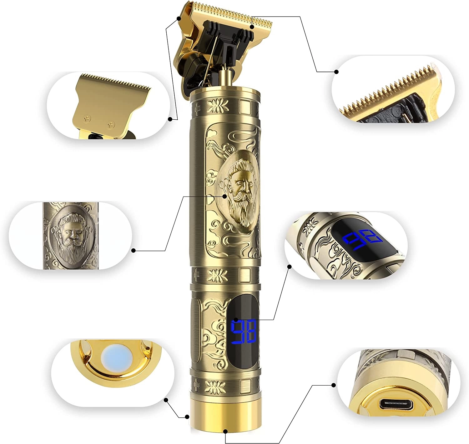 Cortadora de pelo y barba inalámbricanMáquina de cortar cabello con pantallanCortapelos recargable con pantallanAfeitadora eléctrica con pantalla y batería recargablenRecortadora de barba con pantalla y funcionamiento inalámbrico