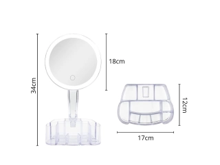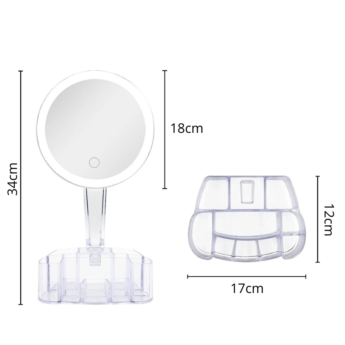 Espejo cosmético, Espejo giratorio con luz LED, Espejo de maquillaje con iluminación LED, Pie de acrílico transparente, Espejo de tocador iluminado
