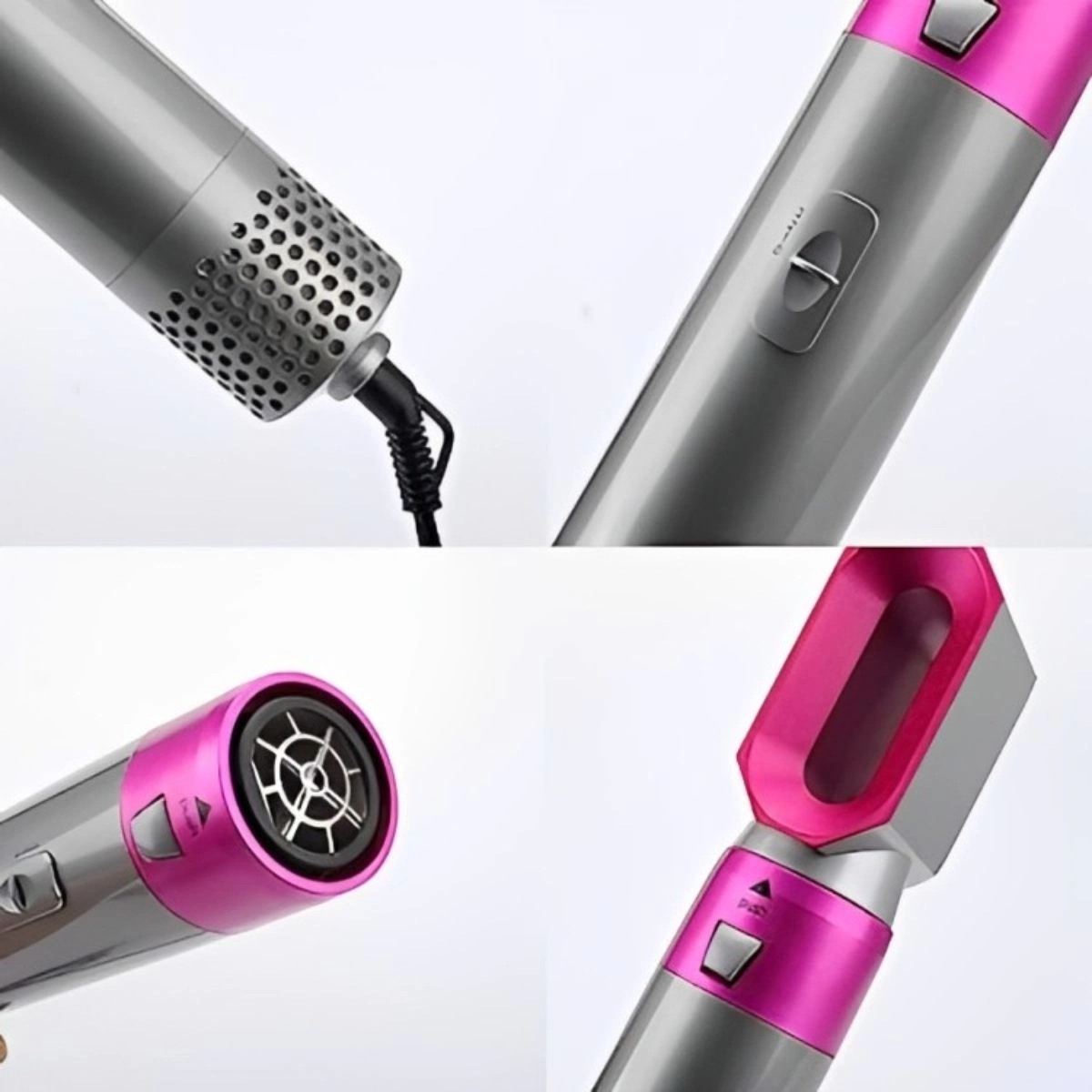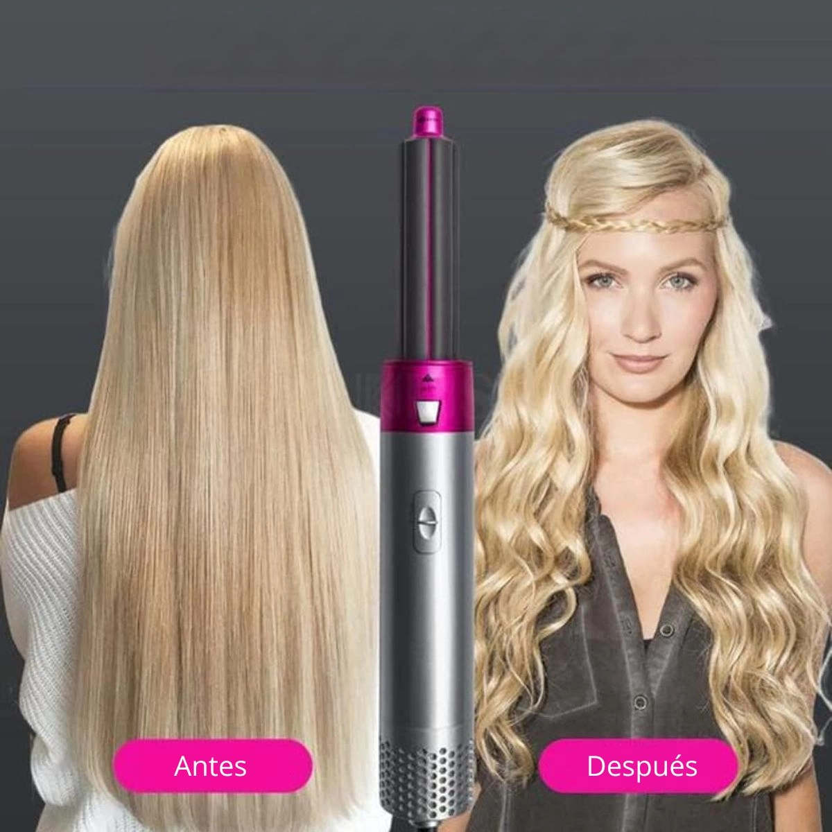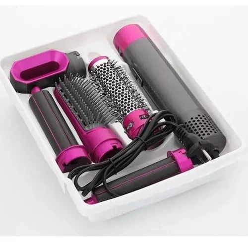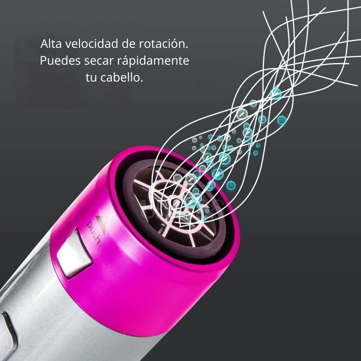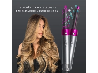 El secador pelo viene con cinco accesorios de cepillo intercambiables (alizado, rizado, soplado con cepillos de peinado).