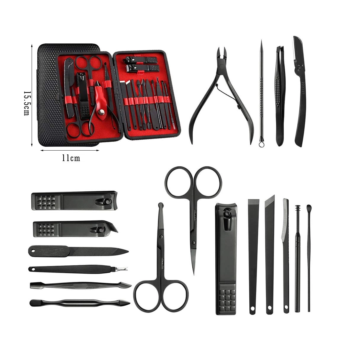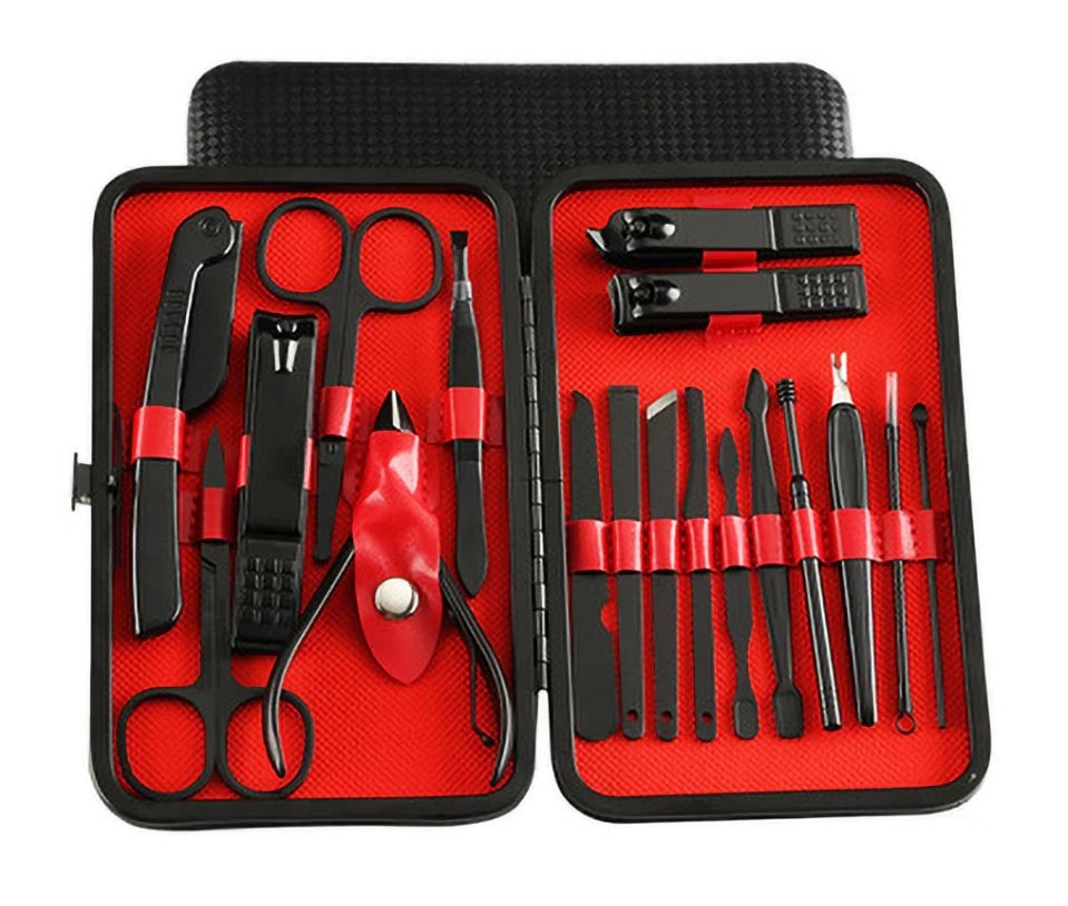 set de manicura y pedicura, set de cortauñas, kit de aseo 18 en 1, herramientas de cuidado personal, set de uñas profesional, kit de manicura portátil, set completo para uñas, kit de cuidado de uñas, set de pedicura profesional, set de aseo multifuncional.